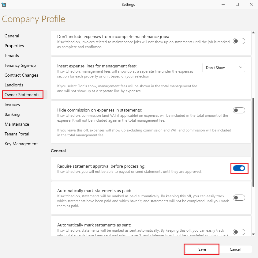 The Statement Approval feature allows you to introduce an additional layer of control by requiring specific users to approve statements before they can be finalised. This is especially useful if one team member is responsible for preparing statements, and another is responsible for reviewing and authorising them.