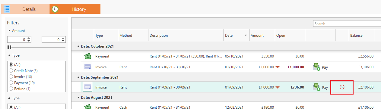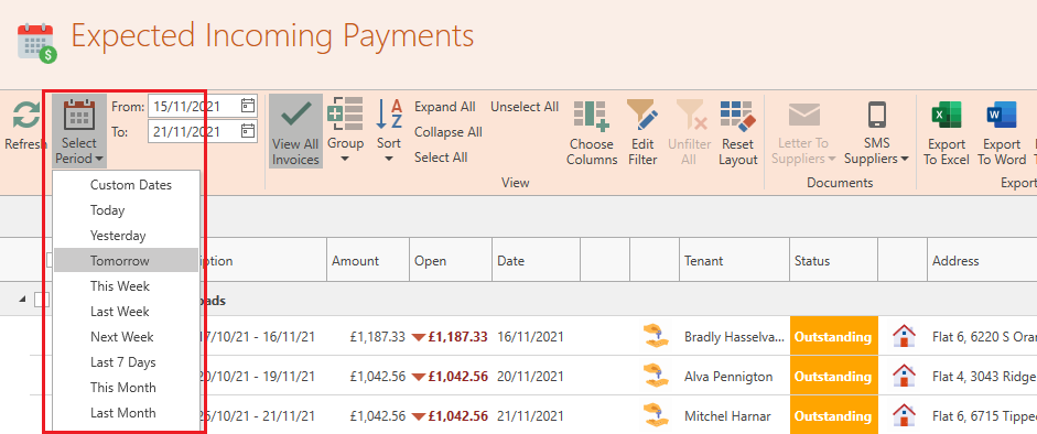 This window will give you a clear overview on how much rent you are expecting for any given period, with a breakdown of how much is already collected and how much is still outstanding.