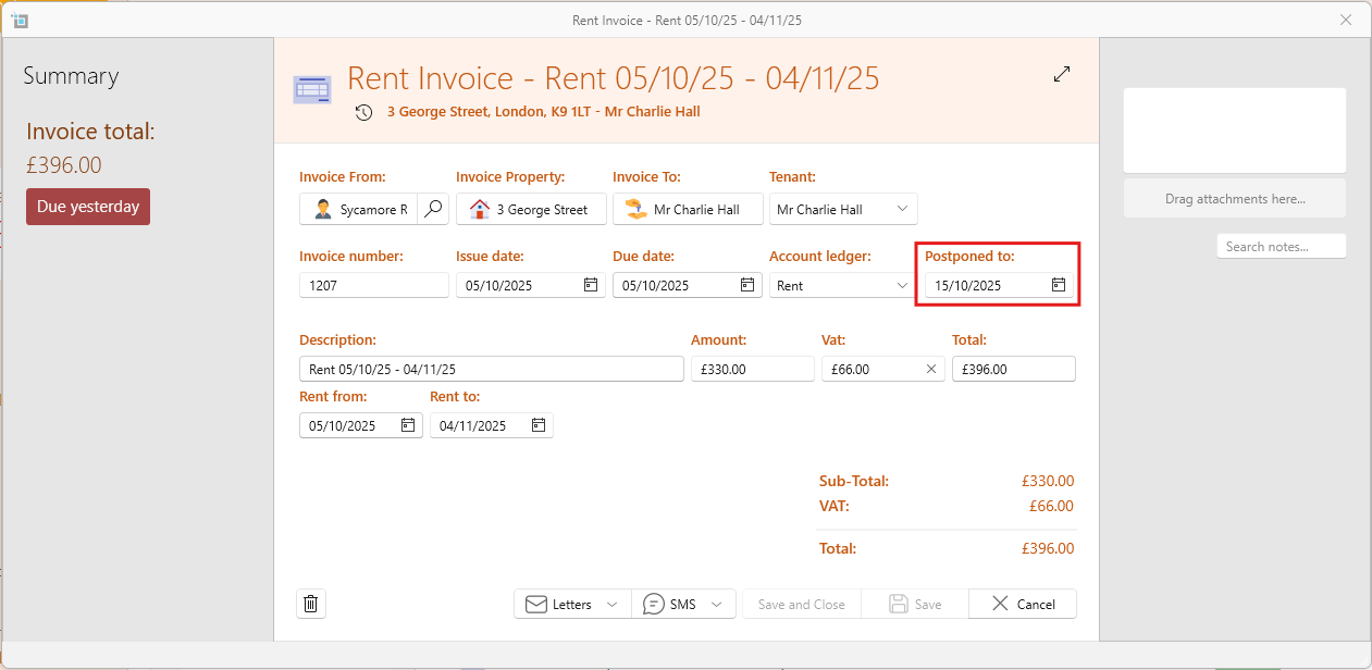 The postponed date can also be be changed manually from here for any individual invoice.