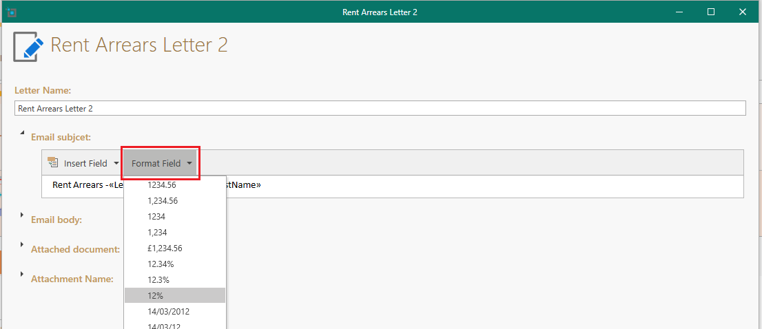 • You can set the format for number and date merge fields, e.g. percentage or currency for numbers.