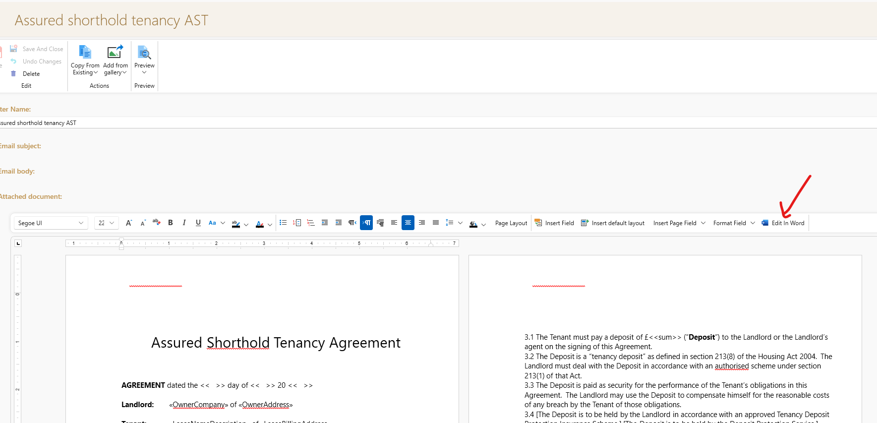 • Clicking Edit in Word will open the document in word on your Pc