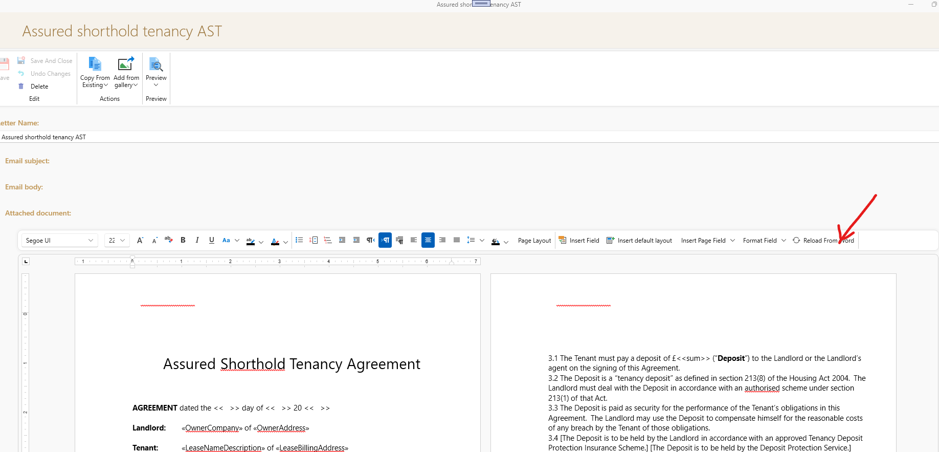 • Now go back to your SleekTech screen and click - Reload from Word