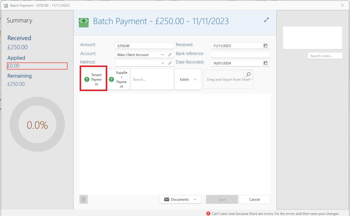 - You can only save the batch once the total of all payments match exactly the payment amount which will be indicated by the green check.