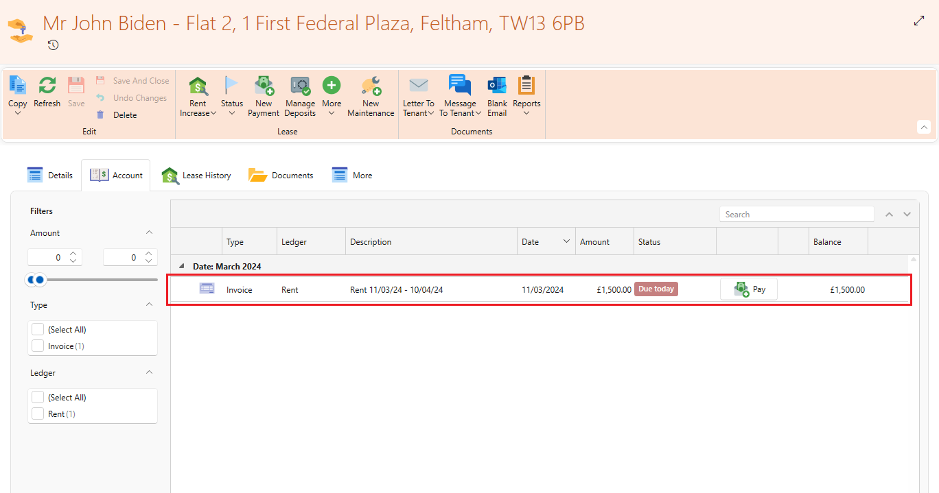 - An invoice will be created on the new lease with this amount. You can settle this with incoming payment as usual.