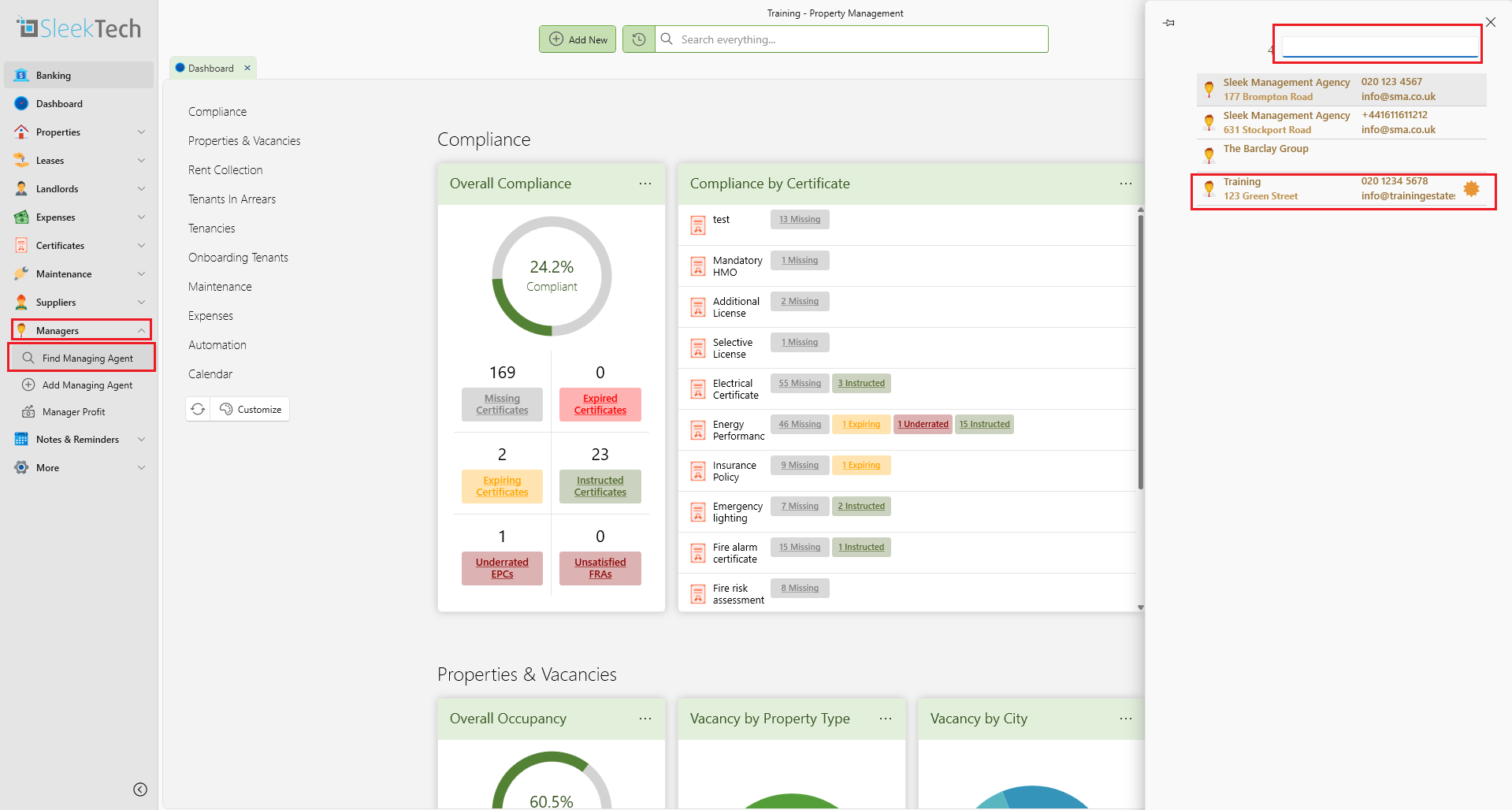 - Search for the managing agent.