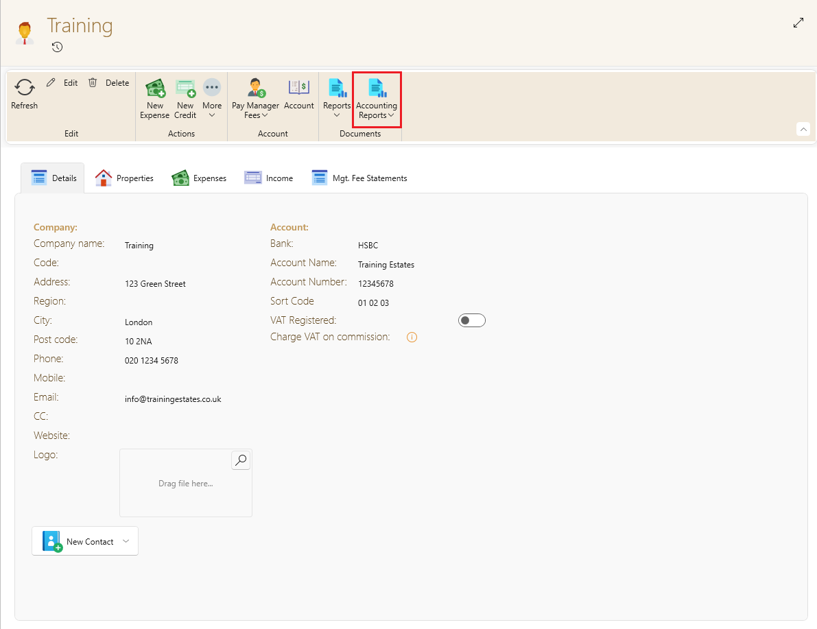 - Once the mangers page is open, on the top ribbon click on accounting reports.
