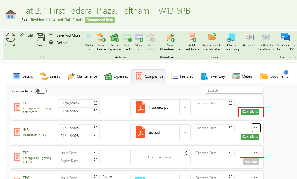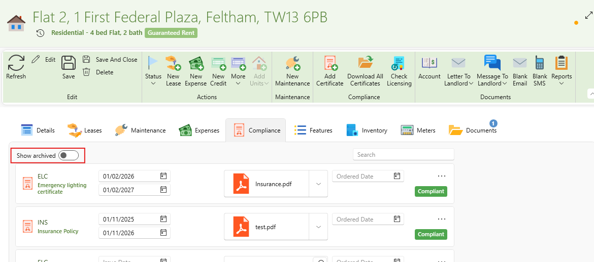 - A list of all archived certificates for this property will open up.