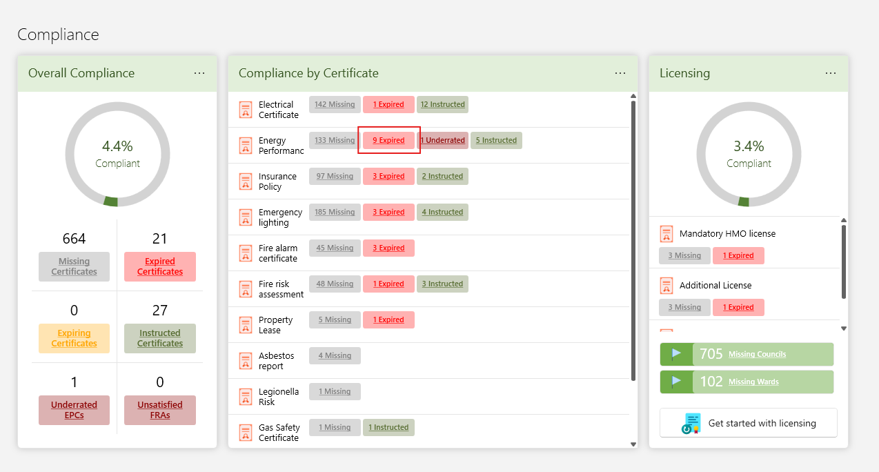 - The status of the certificate will automatically come up. Expired, Expiring or compliant.