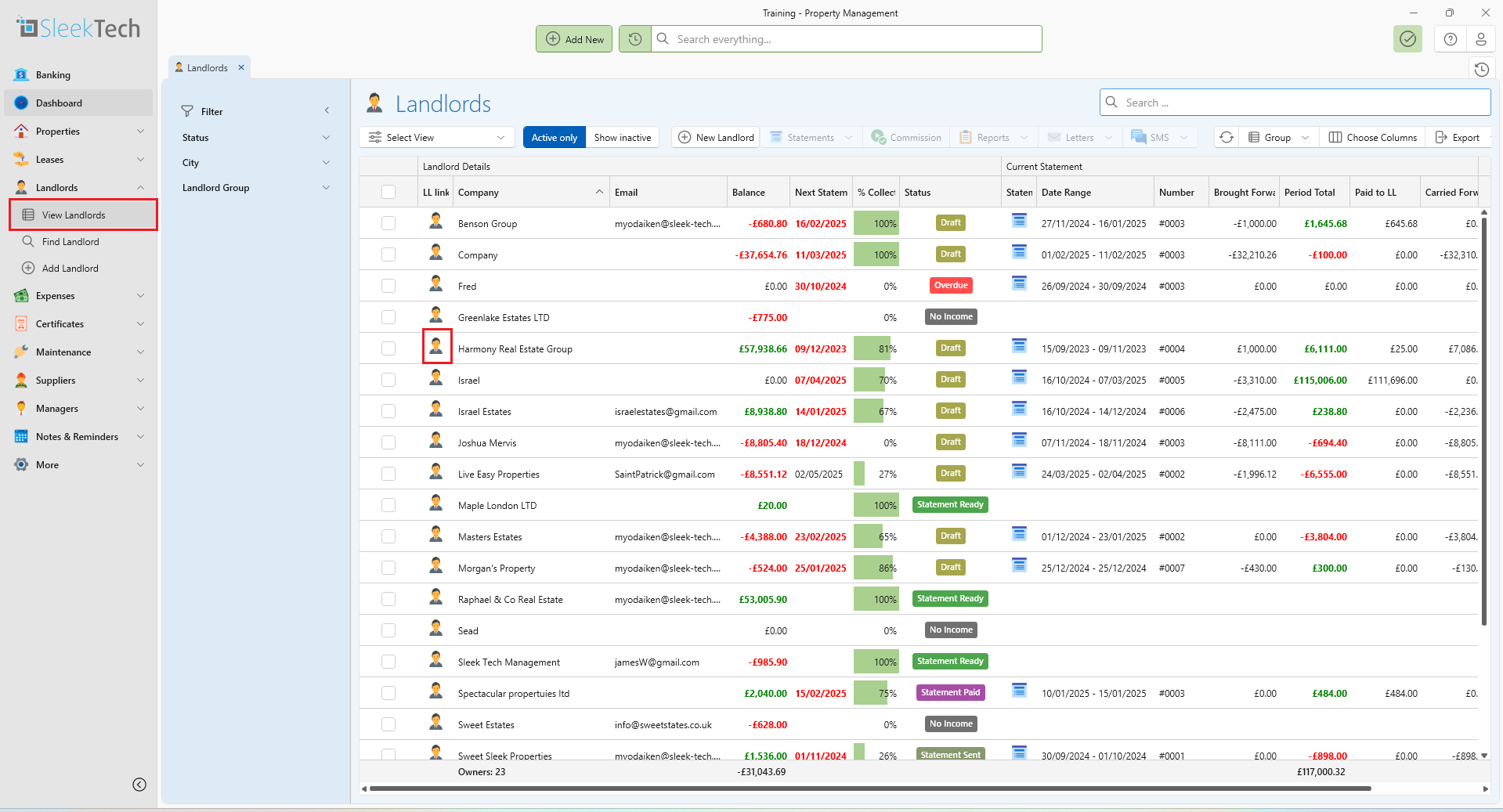 - Click on the Landlord icon of the landlord you want to view balances for.