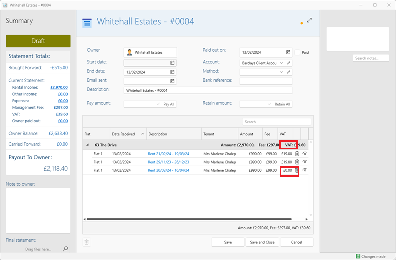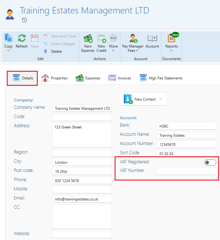 Implementing your VAT number and VAT totals on statements and manager invoices.