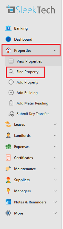 - On the side panel click on Properties and then on Find Property