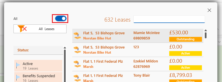 Inactive properties and tenancies won't show up by default when searching properties or tenancies.