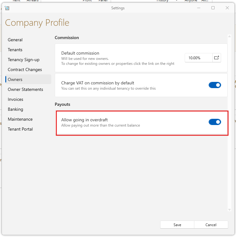 • At the bottom check Allow going in overdraft.