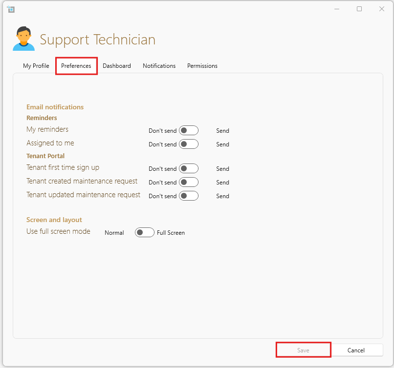 - To receive notifications when a tenant reports a maintenance issue on the tenant portal, check Tenant created maintenance request.