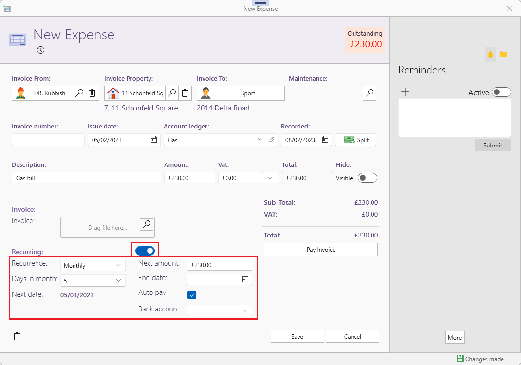 - Some charges, like mortgages and utility bills are being settled via direct debit automatically. You can switch on Auto Pay so SleekTech will create the invoice and the payment. You can also select the bank account this charge is paid from.