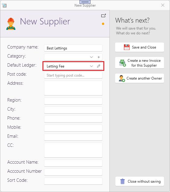 Most of the times, suppliers will send you invoices for the same ledger, e.g. a Letting company will mostly send you invoices for Letting fee. You can now set a default ledger to any supplier so when inserting new invoices, SleekTech will prefill the ledger based on the supplier default.