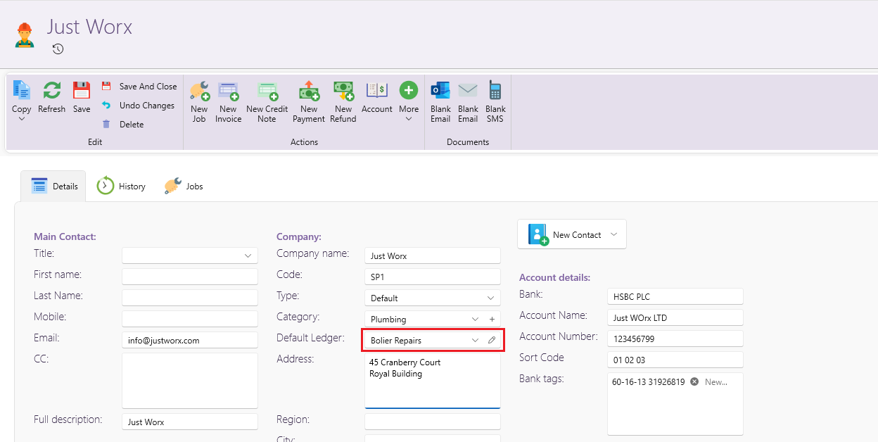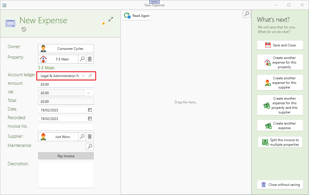 Now when creating an expense for the supplier the default ledger will automatically be selected: