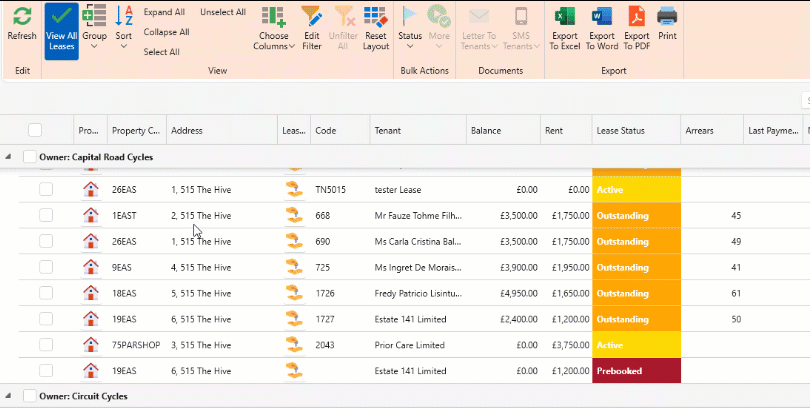 In the Manage Leases window, you can now bulk update leases statuses.