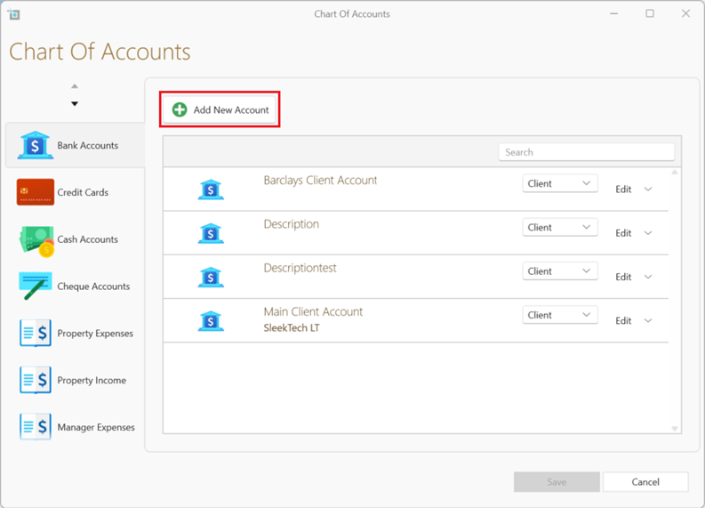- Select +Add New Accounts.