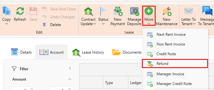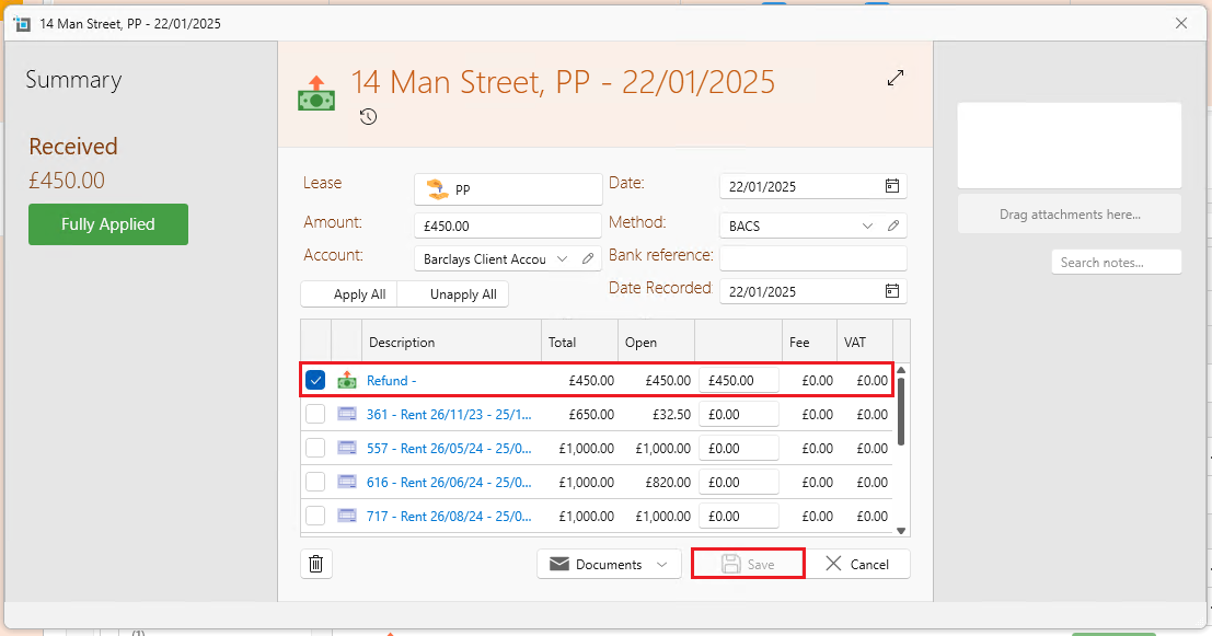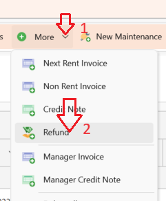 - When the actual payment comes through you will need to apply it to the Refund to ensure that it doesn't mistakenly go towards the next open rent invoice.