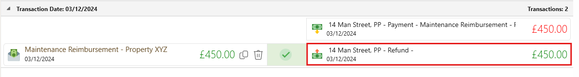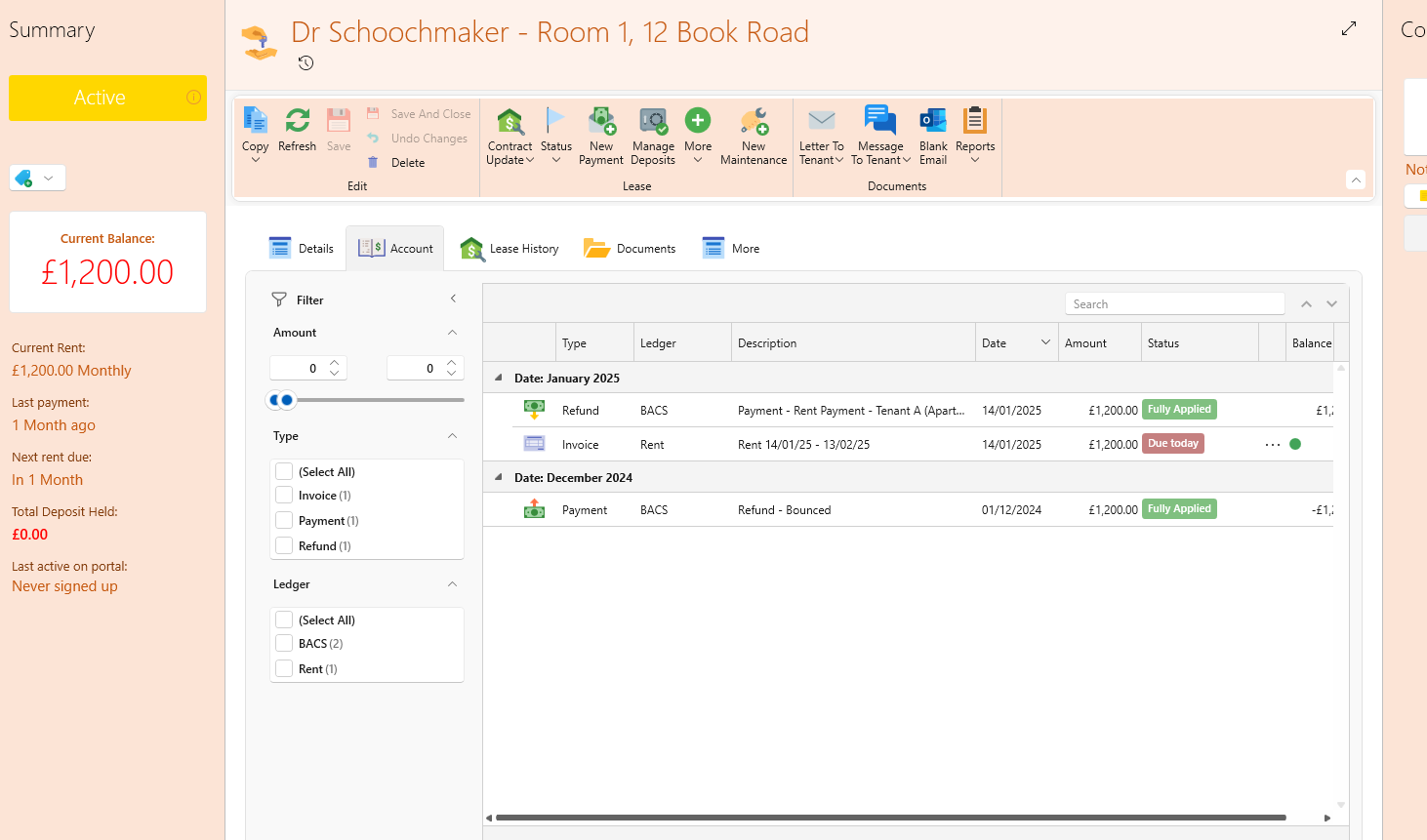 - The original rent invoice will now show as outstanding, which maintains a clear record of the payment process.
