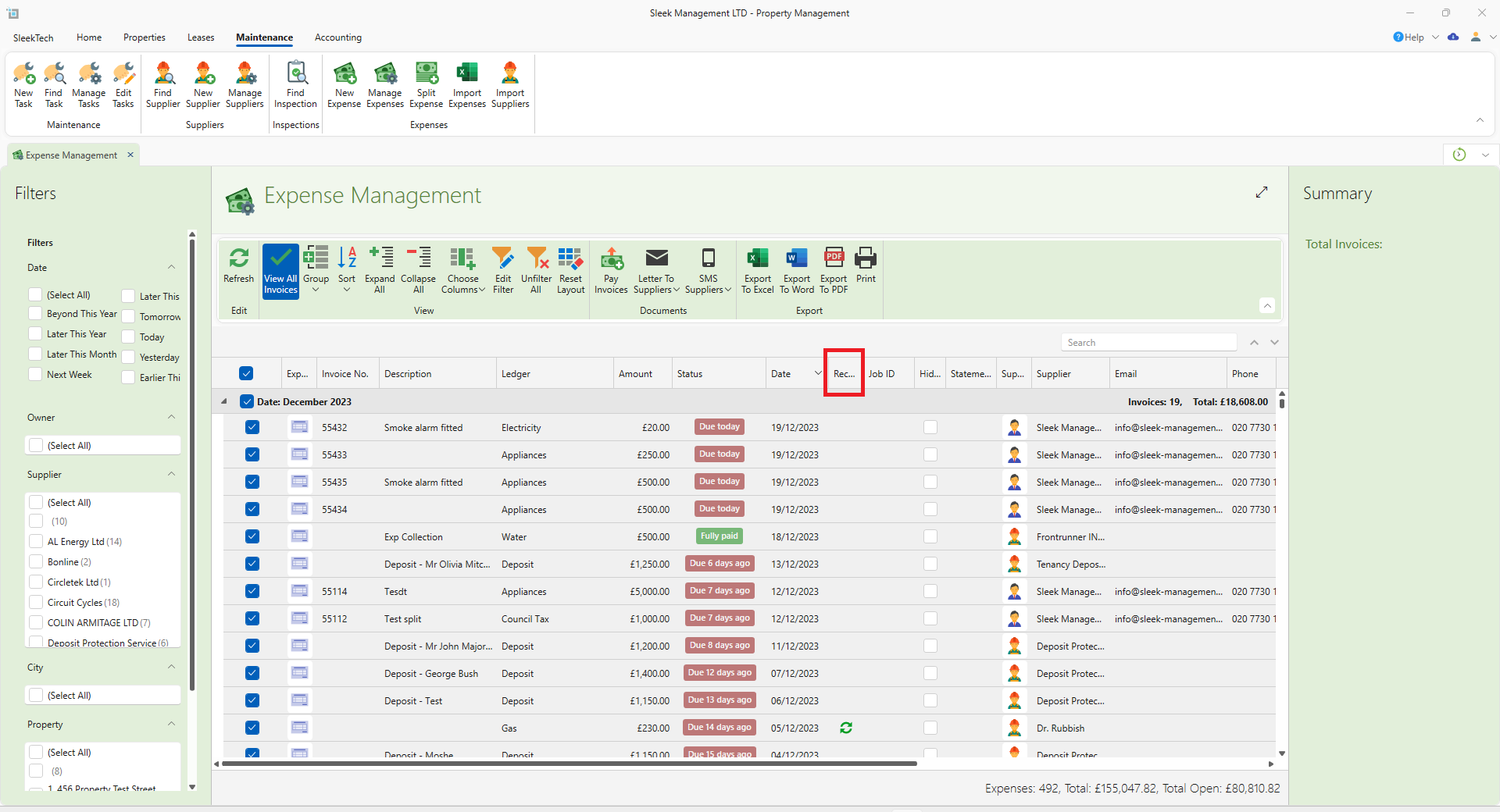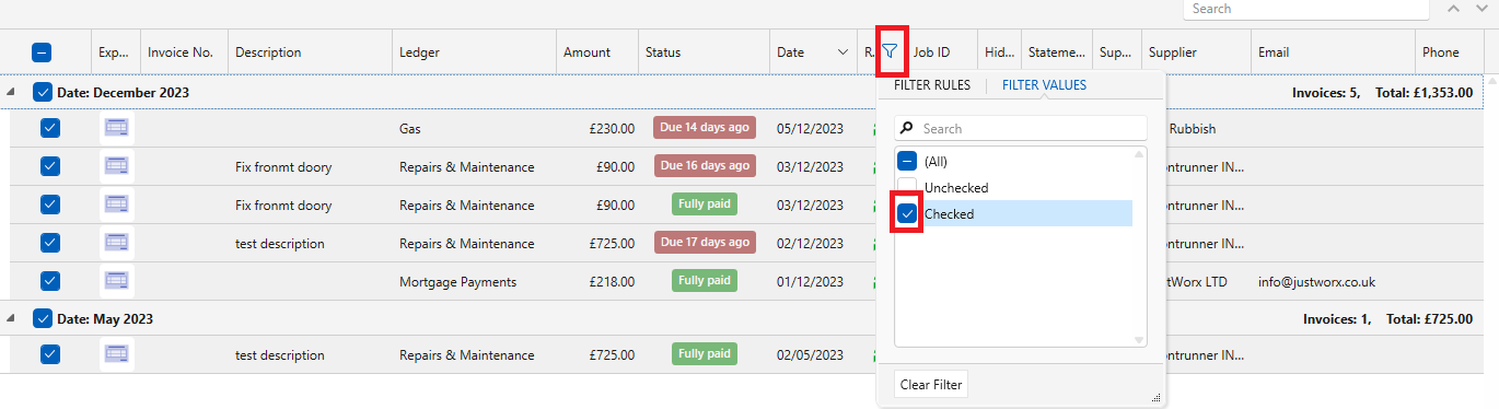 • Click on the filter icon on the column Recurring- it may only show up with Rec