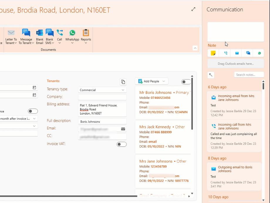 Experience the fully revamped Notes Panel, where logging incoming and outgoing emails, calls, texts, and WhatsApp messages is now more straightforward. Easily track and manage your communication history with tenants.