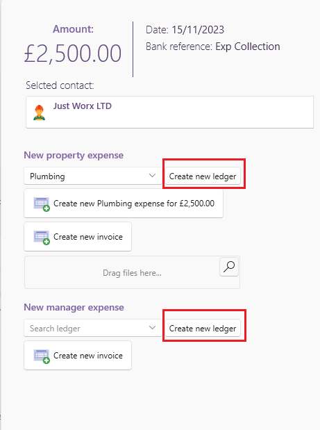 This is how to create a new ledger for a manager or property expense directly from the banking window.