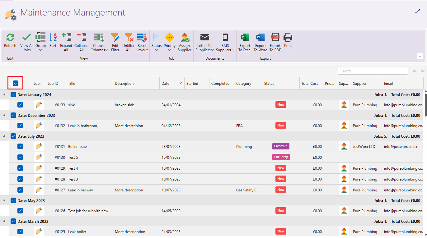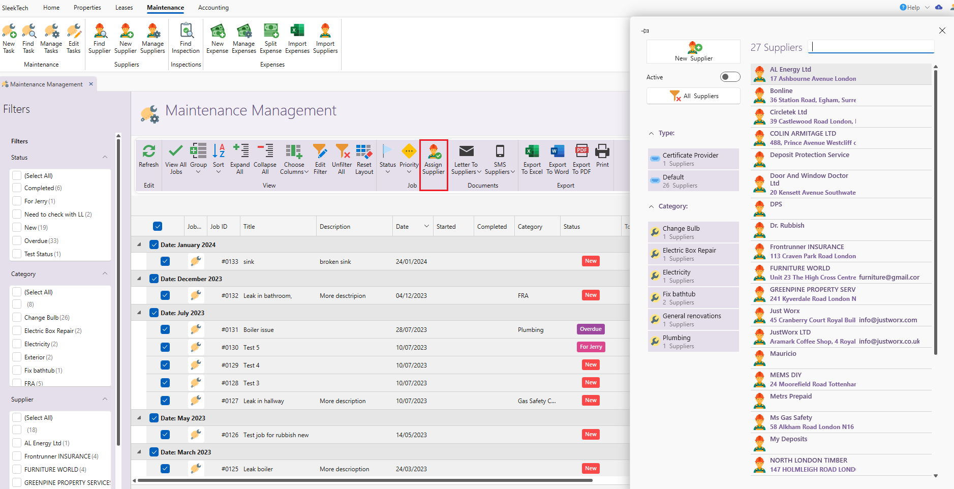 - You can now assign a supplier to all these jobs by clicking on Assign supplier from the page ribbon and then selecting the supplier.