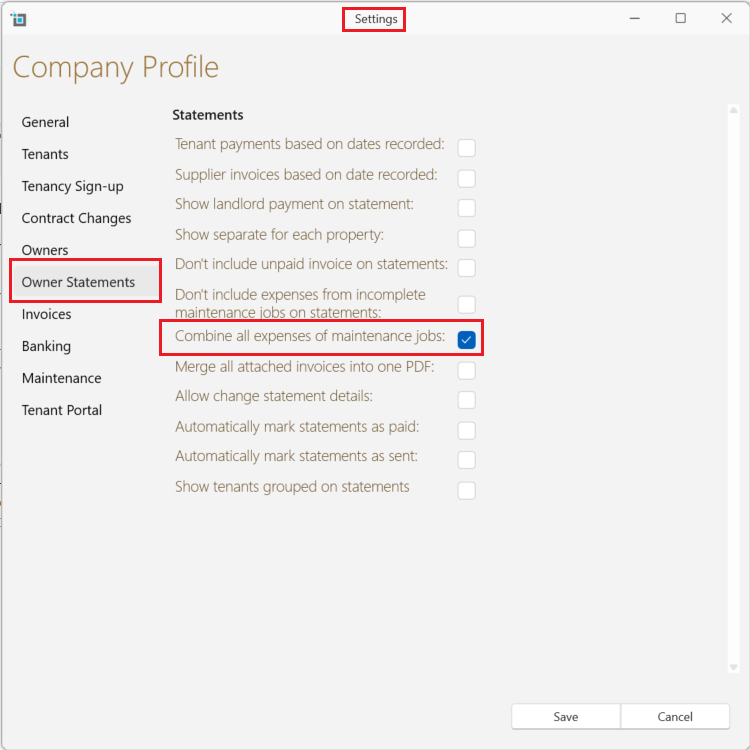 Should you wish to have the description of each invoice show on the owner statement you can change the setting  by selecting: