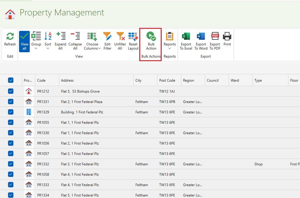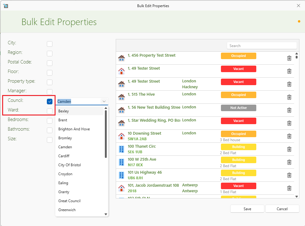 This is how to amend multiple properties to a different council and/or ward
