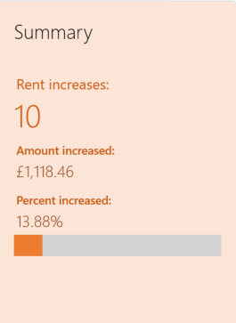 The panel on the left hand side will give you a clear summary of the rent increases in the date range you have chosen including the percentage increased.
