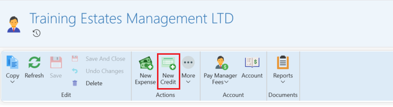 - Select New Credit to create a credit note.