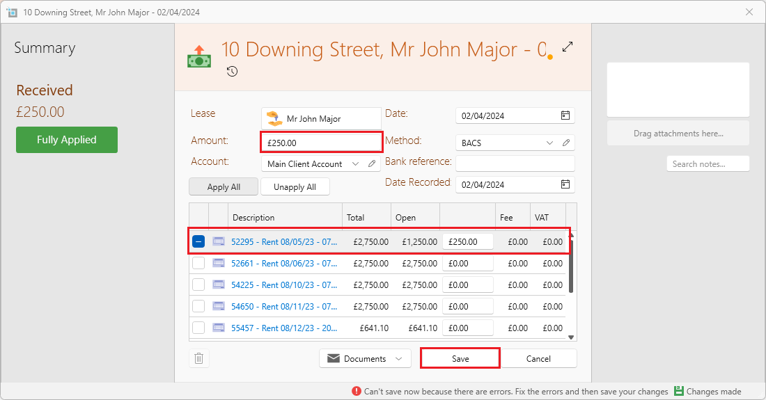 - Apply it to the paid invoice from the supplier, and also to the payment made on the tenants page. (which will equal zero)