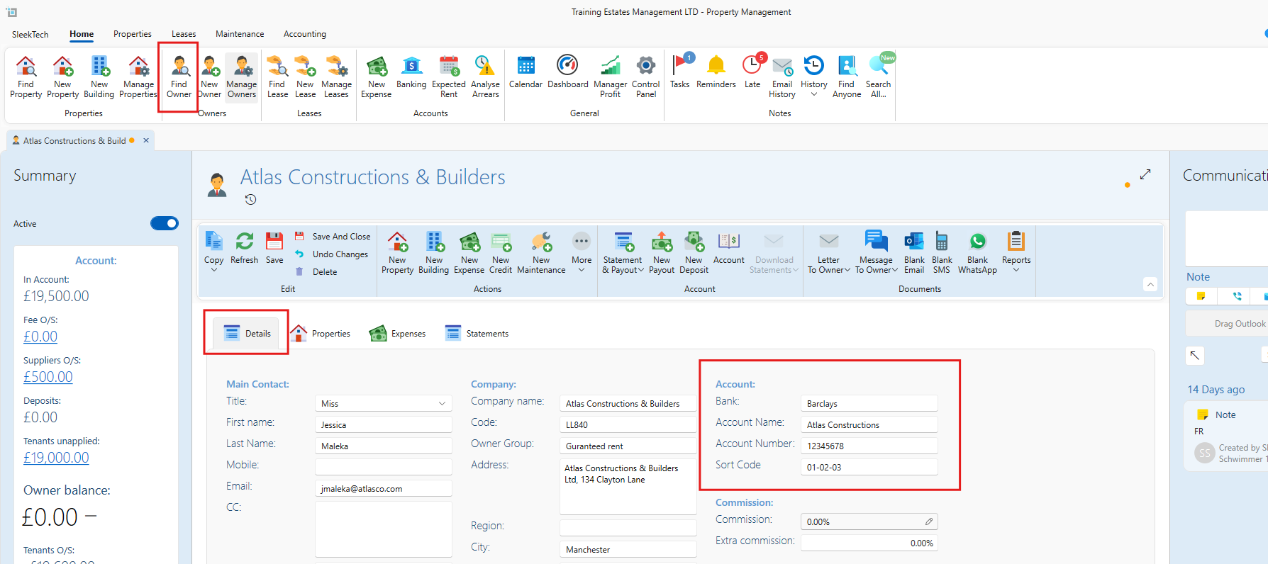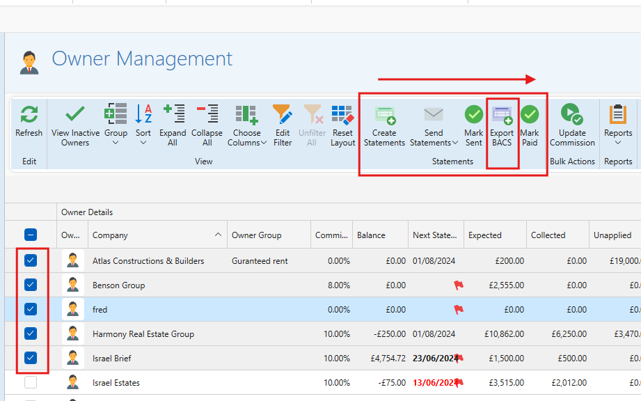 SleekTech allows you to export BACS (Bankers' Automated Clearing Services) for owners where the details (more specifically, the banking details) have been fully included for each.