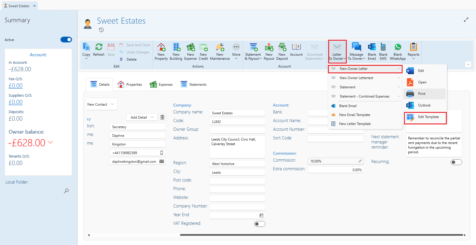 - From any letter menu, navigate to the letter you wish to edit and click Edit Template.