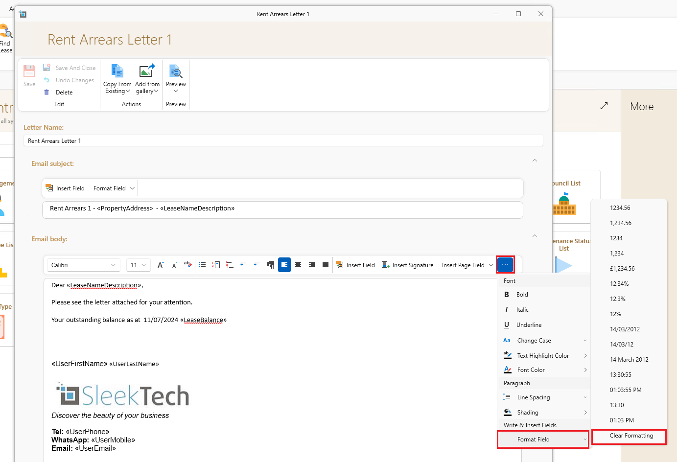 By following these steps, you can efficiently manage and personalize your letters within SleekTech, ensuring clarity and professionalism in all your communications.