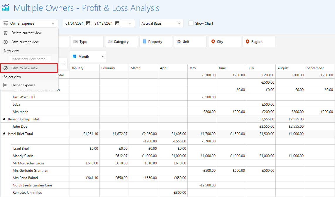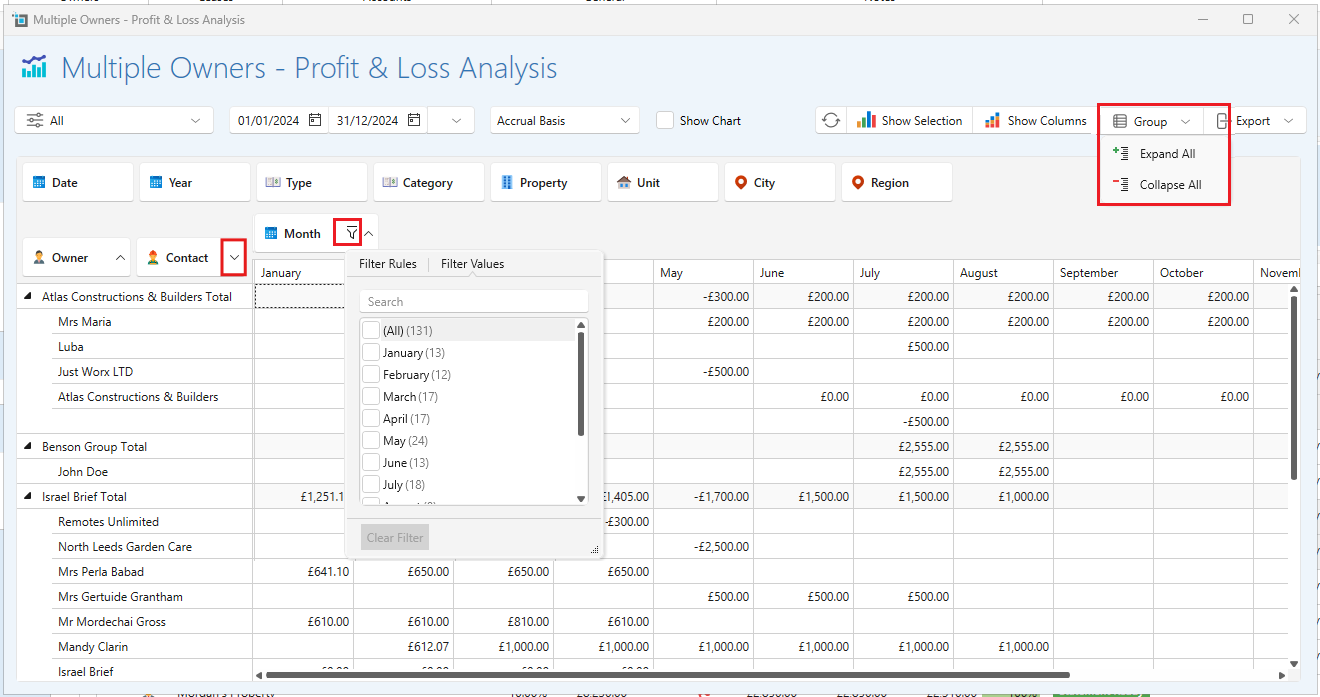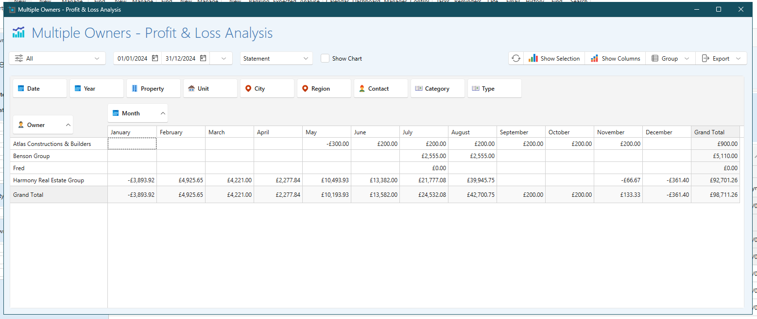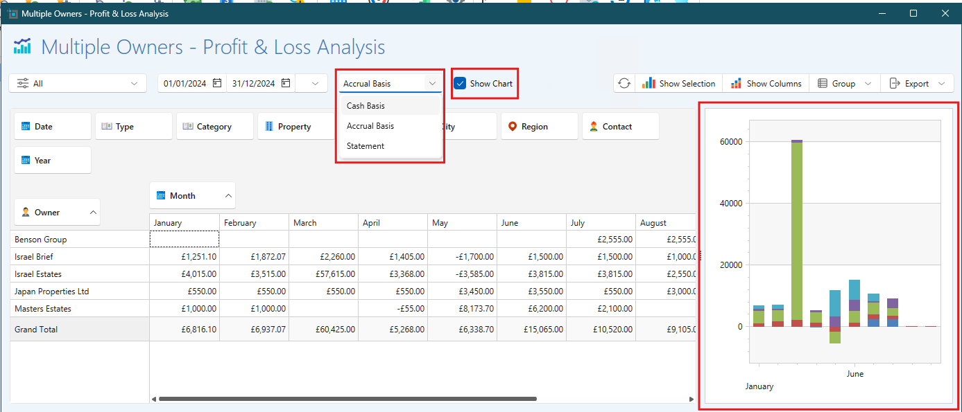 This capability is invaluable for property managers handling various properties, allowing for a consolidated view of financial performance across different accounts.