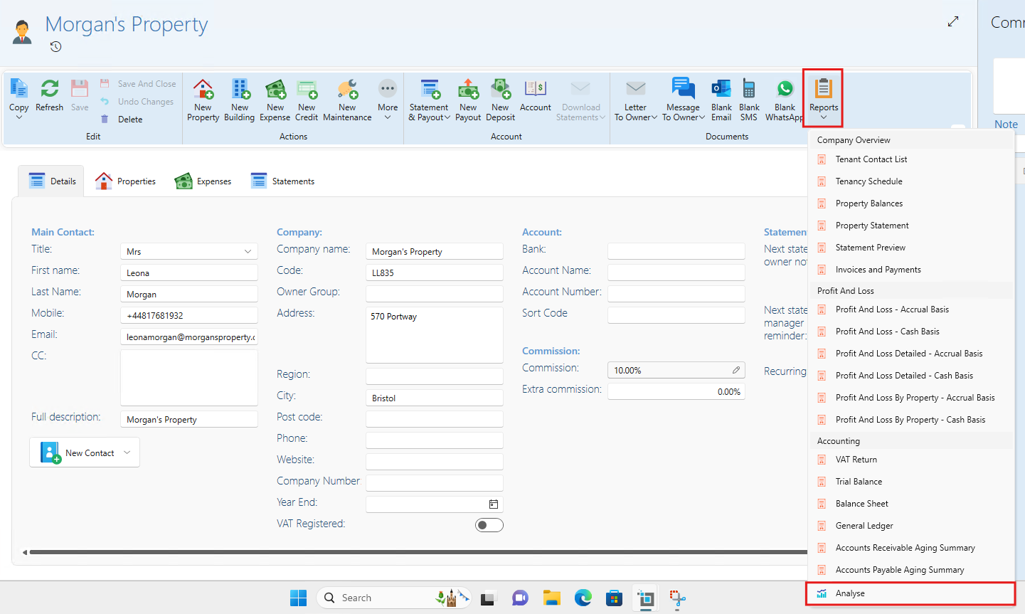 The Analyse feature can be applied to multiple landlords simultaneously.