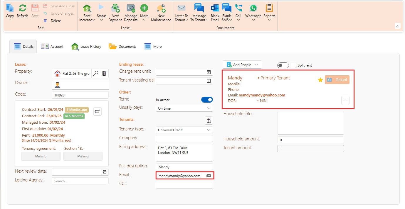 - Only one email address can be associated with each property, regardless of the number of tenants residing there.