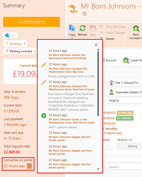 Once the tenant logs in for the first time, their activities will be updated accordingly in the tenant portal.