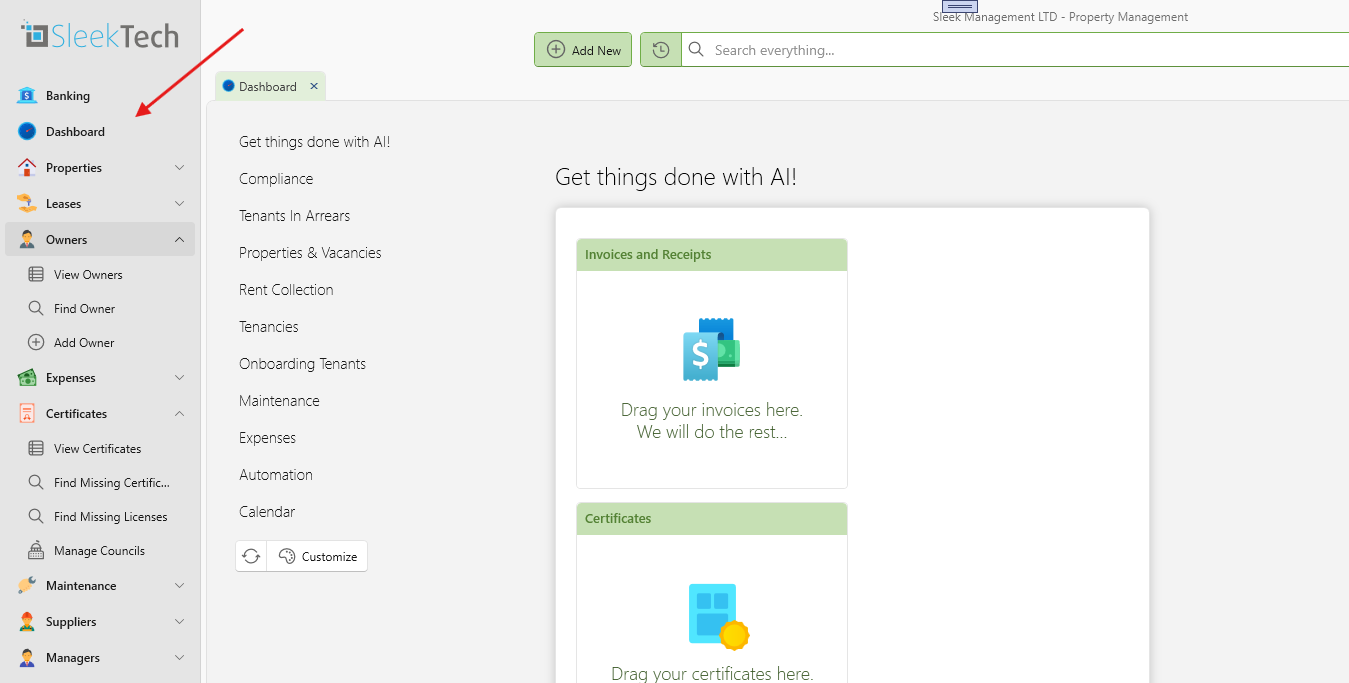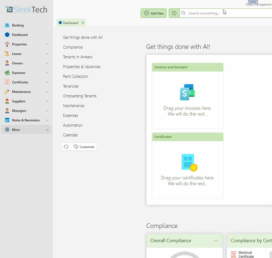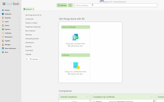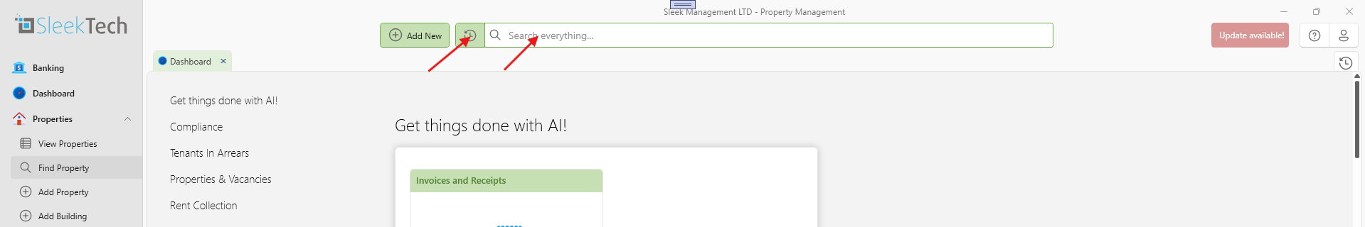 A new, easily accessible search bar at the top of the sidebar lets you search across the entire software, making it easier to find specific properties, expenses, and other data quickly.