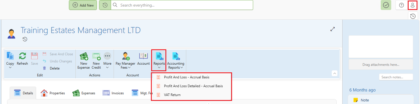 - Click on the User icon in your system, then select Company name from the dropdown list.