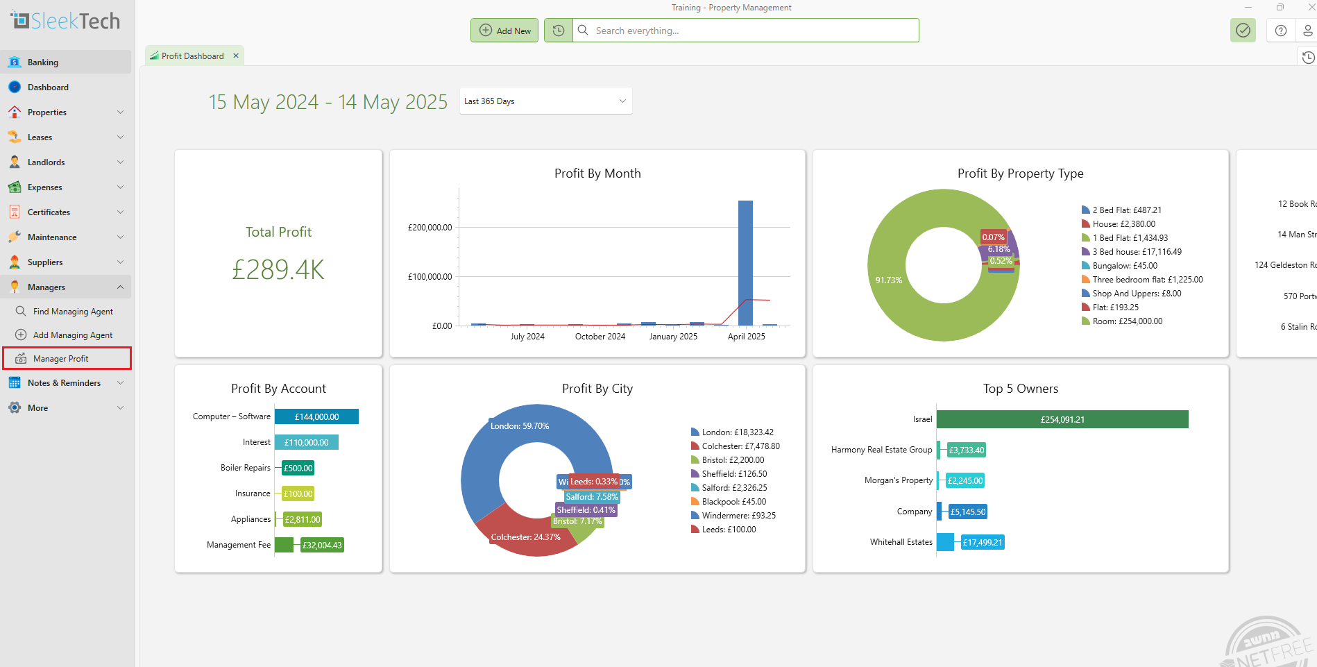 - The report will provide a quick snapshot of the manager’s income, expenses, and net profit over the past year.