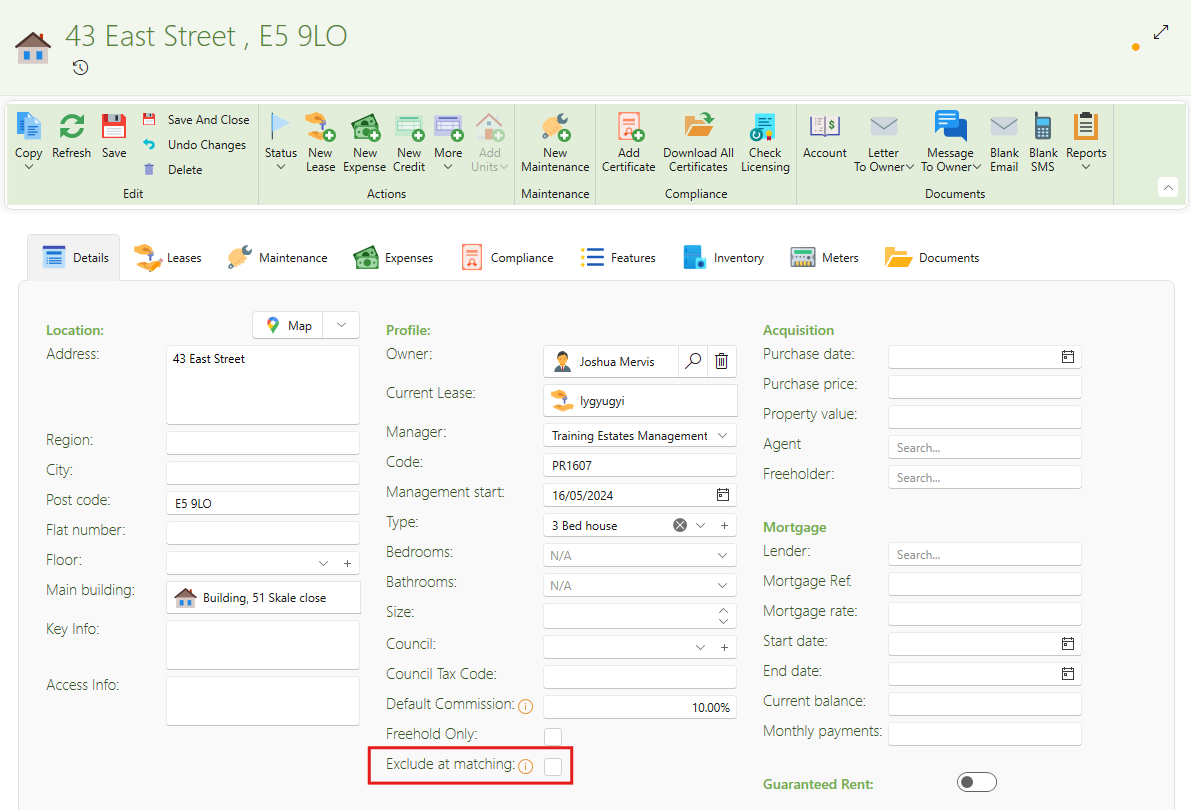 Sometimes, companies include their own office properties in the system, which can interfere with invoice matching. You can now exclude these properties from the matching engine to avoid discrepancies.