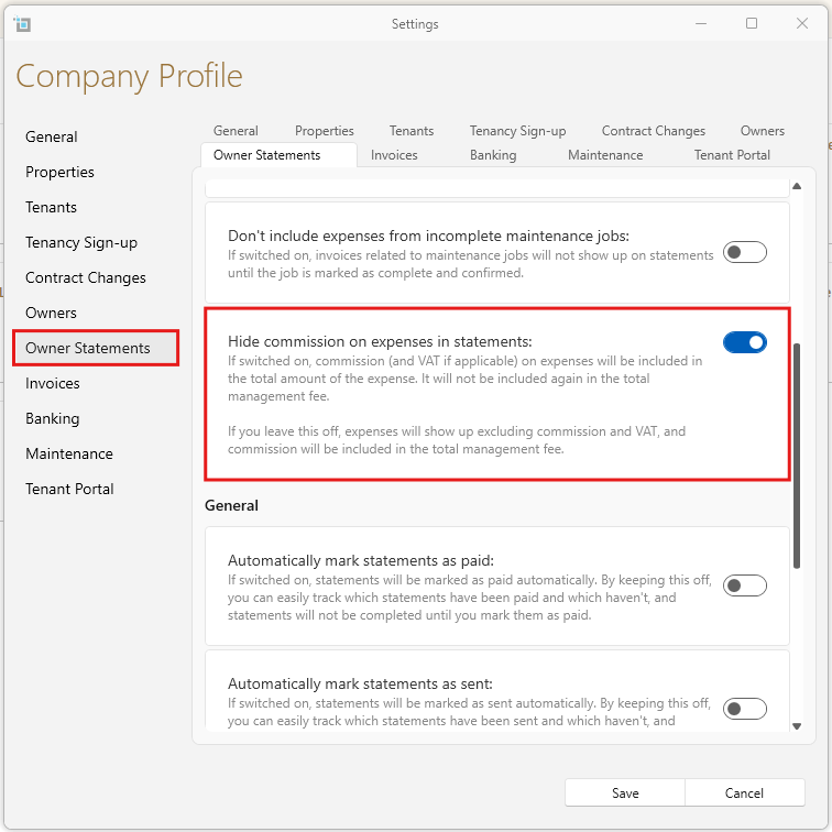 There is now an option to hide expense commissions on the statement, offering more flexibility in how information is presented. If left off, expenses show up exclusive of commission and VAT.