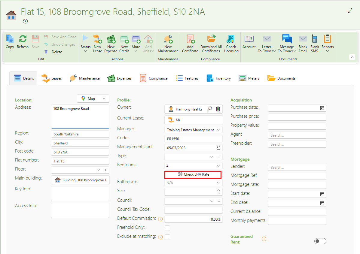 You can now check the Local Housing Allowance (LHA) rate directly from the property page. This feature will be enabled only if the postcode and bedroom count are filled in. If the parent property has Shared Facilities enabled, the Shared Accommodation Rate will be displayed, taking the bedroom count into account.