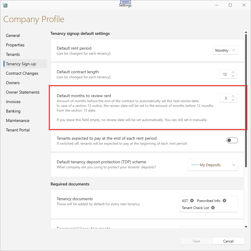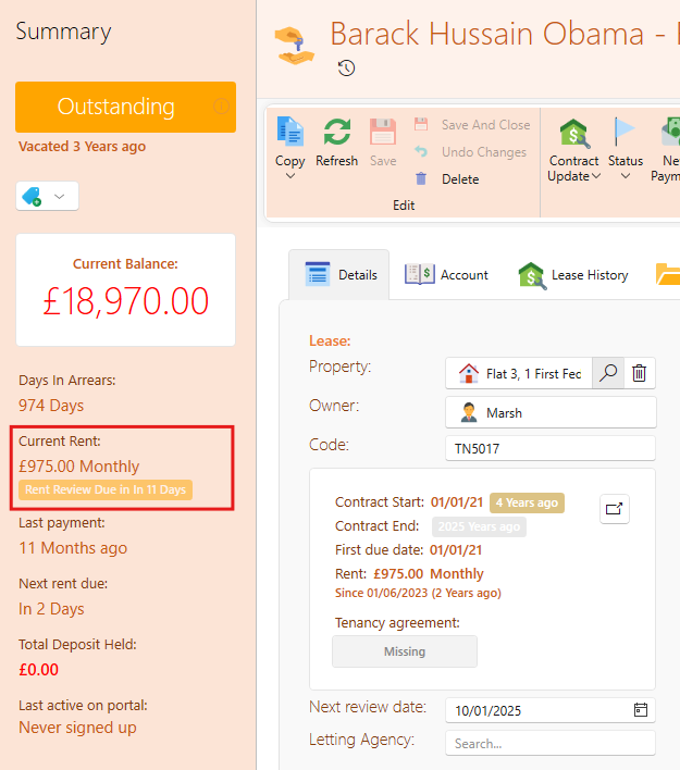 You can now set rent review dates to automatically pre fill based on contract and dates.
