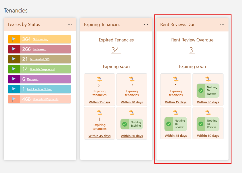 You're overdue rent reviews and the reviews become a due we'll show on the dashboard so you can easily access them and take the necessary action.