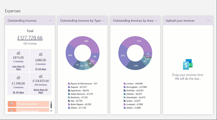 The upload invoices card can be found on the dashboard under the Expenses section.
